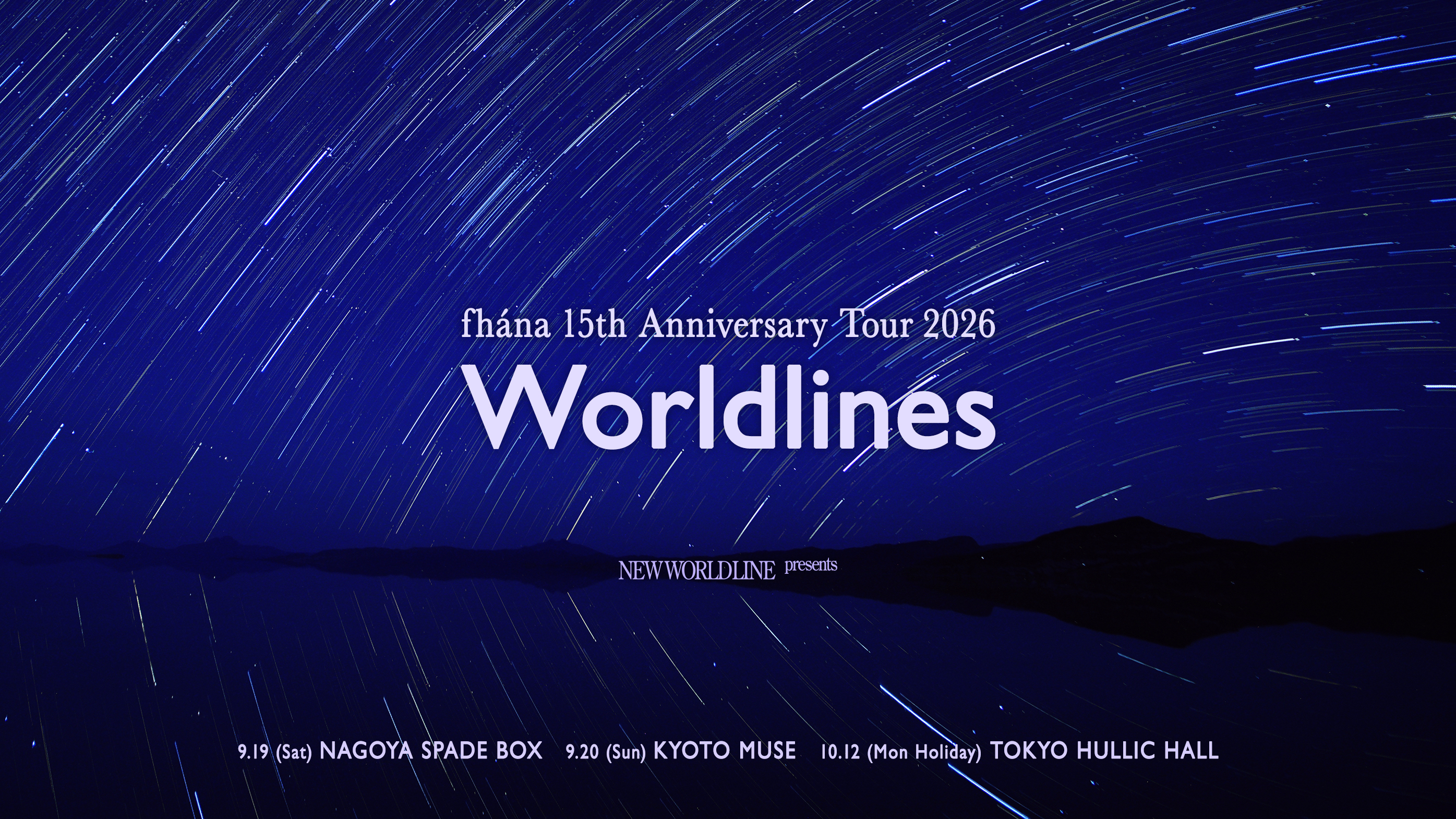 fhána 15th Anniversary Tour 2026 “Worldlines” <NAGOYA> ◆公演日 2026年9月19日(土) ◆会場 SPADE BOX(名古屋) 愛知県名古屋市中区新栄2-1-9 雲竜FLEXビル西館B1F ◆チケット ◆ファンクラブ先行 ※抽選 受付時間:2026/03/26(木)22:00 ~ 4/9(日)23:59 お申し込みはこちら→https://fhana.club/contents/1058865